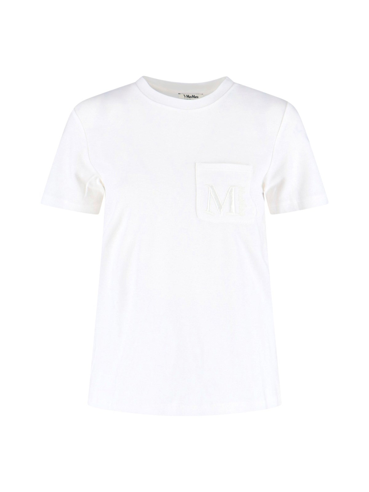 'S MAX MARA' LOGO T-SHIRT IN WHITE COTTON WITH CREW NECK, SHORT SLEEVES, CHEST POCKET, LOGO EMBROIDERY DETAIL, STRAIGHT HEM. PRODUCT INFO PRODUCT CODE 2529976011600001 COMPOSITION: 100% COTTON SIZE AND FIT: REGULAR FIT MADE IN: TUNISIA