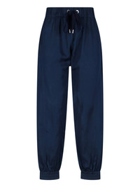 SA SU PHI VALENTINA BLUE SILK BLEND SPORTS PANTS WITH HIGH ELASTIC WAIST, DRAWSTRING CLOSURE, TWO SIDE POCKETS, ELASTICATED DETAILS AT THE HEM, STRAIGHT LEG. PRODUCT INFO PRODUCT CODE S25302 ST0351 COMPOSITION: 57% SILK, 43% VISCOSE SIZE AND FIT: REGULAR FIT MADE IN: ITALY