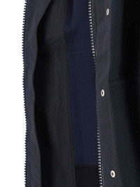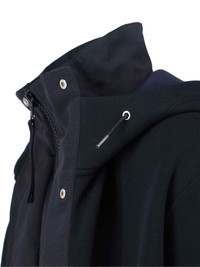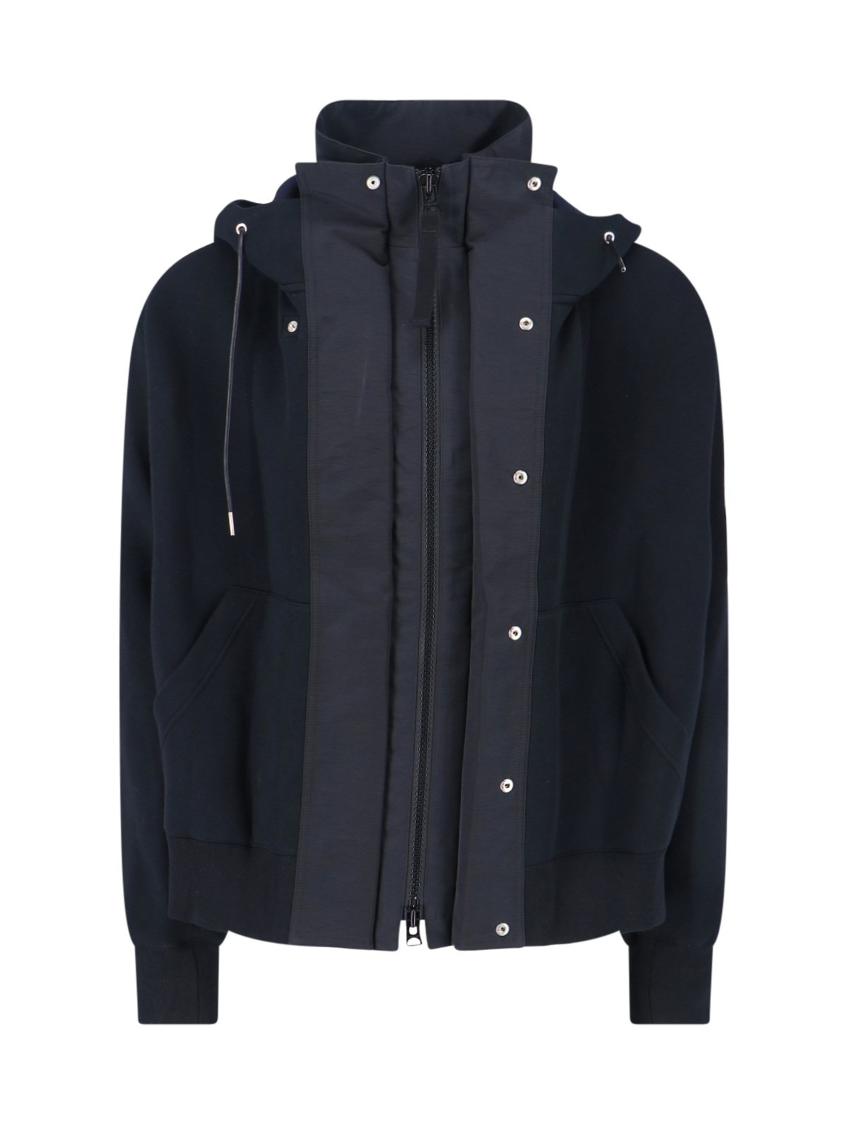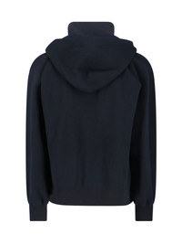 SACAI BLUE NAVY COTTON BLEND HOODIE WITH HIGH NECK, DRAWSTRING HOOD, DOUBLE ZIP AND BUTTON CLOSURE, TWO SIDE POCKETS, RIBBED TRIM, STRAIGHT HEM. PRODUCT INFO PRODUCT CODE 25 03812M001 COMPOSITION: 62% COTTON, 38% POLYESTER SIZE AND FIT: SOFT FIT MADE IN: JAPAN - TRIMS: 100% METAL