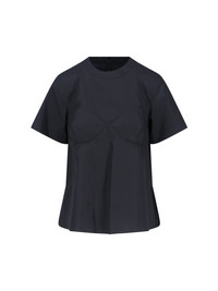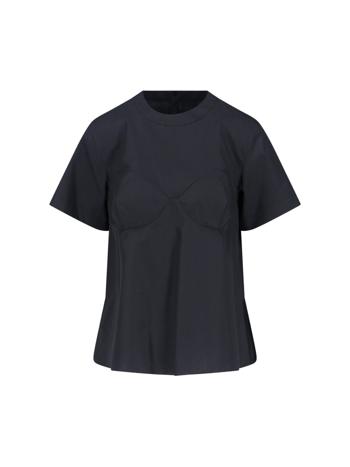 BLACK SACAI COTTON BLEND T-SHIRT WITH CREWNECK, SHORT SLEEVES, FRONT STITCHING, BACK ZIP CLOSURE, STRAIGHT HEM. PRODUCT INFO PRODUCT CODE 25 08168001 COMPOSITION: 65% POLYESTER, 35% COTTON SIZE AND FIT: REGULAR FIT MADE IN: JAPAN