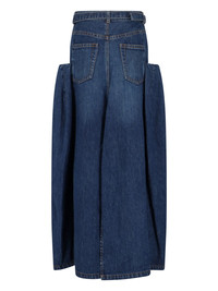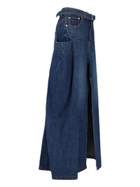 SACAI BLUE DENIM MAXI SKIRT WITH HIGH WAIST, ADJUSTABLE BELT, FIVE POCKETS, TWO MAXI SIDE POCKETS, MAXI FRONT SPLIT. PRODUCT INFO PRODUCT CODE 25 08193401 COMPOSITION: 100% COTTON SIZE AND FIT: REGULAR FIT MADE IN: JAPAN - NUMERICAL SIZING