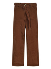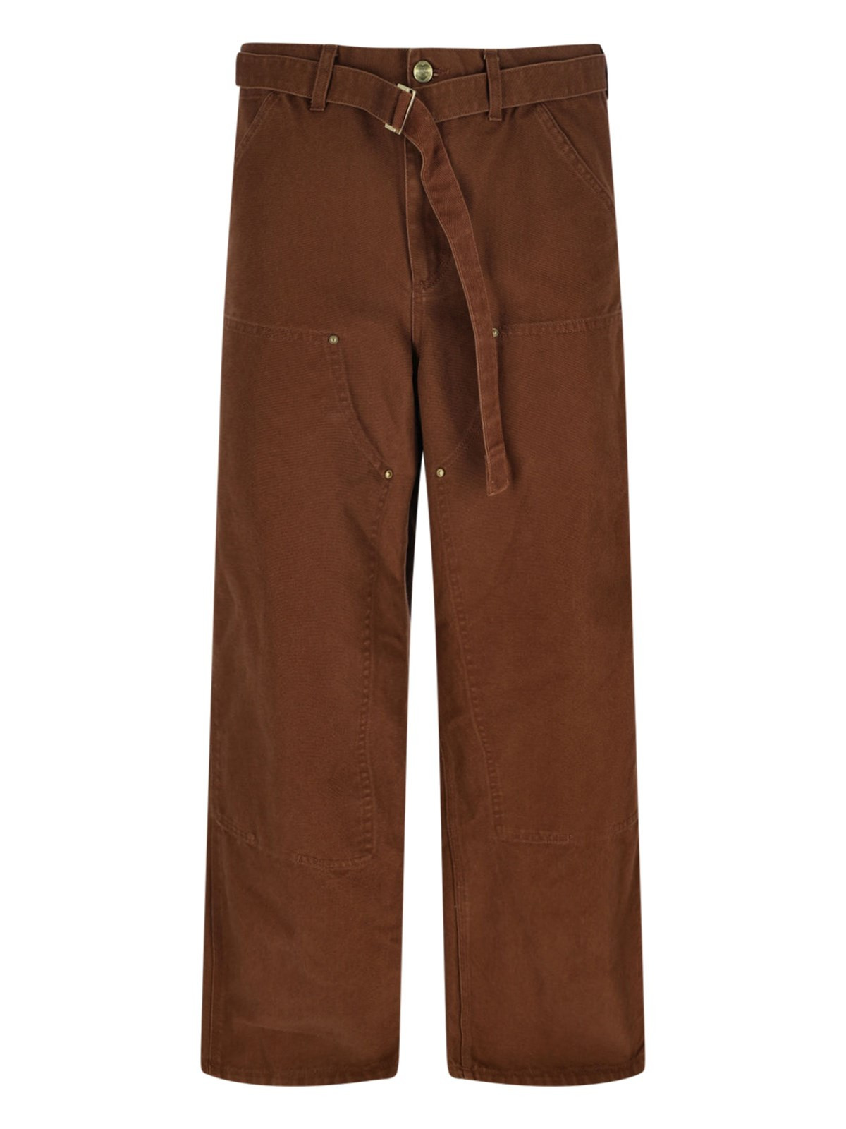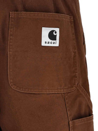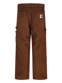 SACAI X CARHARTT WIP 'DOUBLE KNEE' BROWN COTTON PANTS WITH BELT LOOPS, ADJUSTABLE WAIST BELT, BUTTON AND ZIP CLOSURE, FOUR SIDE POCKETS, CONTRAST LOGO PATCH AT THE BACK, TWO BACK POCKETS, STRAIGHT LEG. PRODUCT INFO PRODUCT CODE 25 00991S642 COMPOSITION: 100% COTTON SIZE AND FIT: REGULAR FIT MADE IN: JAPAN