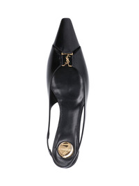 SAINT LAURENT "BABYLONE" SLINGBACK MULES IN BLACK CALF LEATHER WITH SQUARE TOE, ELASTICIZED STRAP, GOLD METAL LOGO ON THE TOP, SLIP-ON FIT, LEATHER SOLE. PRODUCT INFO PRODUCT CODE 800240 AAEHI1000 COMPOSITION: 100% CALF LEATHER MADE IN: ITALY - SOLE: 100% LEATHER