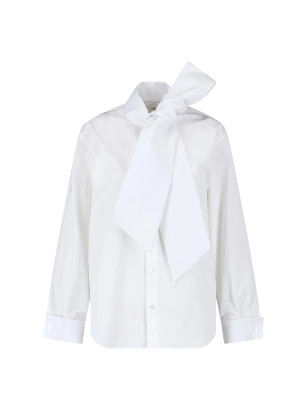 - BOW TIE SHIRT IN WHITE POPLIN BY SAINT LAURENT - TIEABLE BOW COLLAR - BUTTON CLOSURE - LONG SLEEVES - CUFF BUTTONS PRODUCT INFO PRODUCT CODE 865302 Y1H489000 COMPOSITION: 100% COTTON SIZE AND FIT: REGULAR FIT MADE IN: ITALY
