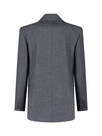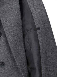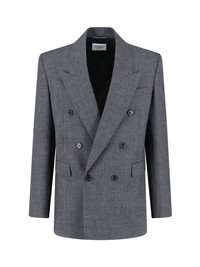 SAINT LAURENT DOUBLE-BREASTED GREY WOOL BLAZER WITH PEAK LAPELS, BUTTON CLOSURE, CHEST POCKET, TWO SIDE POCKETS, INNER FLAT POCKET, BUTTON CUFFS, STRAIGHT HEM. PRODUCT INFO PRODUCT CODE 835102 Y5K321473 COMPOSITION: 100% WOOL SIZE AND FIT: REGULAR FIT MADE IN: ITALY