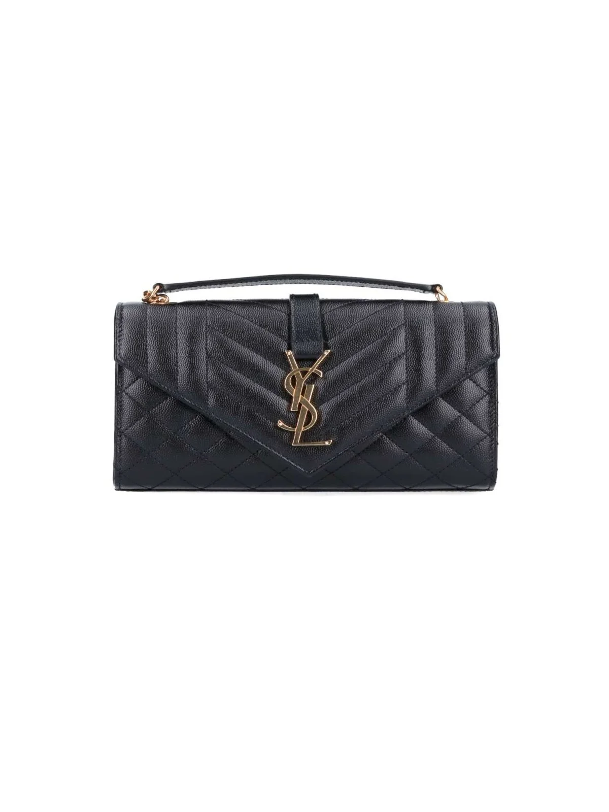 SAINT LAURENT 'ENVELOPE' SHOULDER BAG, EMBOSSED AND QUILTED LEATHER, BLACK COLOUR, ADJUSTABLE CHAIN SHOULDER STRAP, MAGNETIC CLOSURE, GOLDEN METAL LOGO ON FRONT. PRODUCT INFO PRODUCT CODE 600195 BOW911000 MADE IN: ITALY - 100% LEATHER - H 13 X W 21 X D 6 CM - SHOULDER STRAP DROP: 55 CM