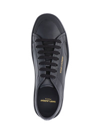 SAINT LAURENT GYM SNEAKERS IN BLACK CALF LEATHER WITH ROUND TOE, LACES, LOGO ON TONE-ON-TONE TONGUE, GOLD LOGO PRINT ON THE SIDE, AND RUBBER SOLE. PRODUCT INFO PRODUCT CODE 820087 00N001000 COMPOSITION: 100% CALF LEATHER MADE IN: ITALY - SOLE: 100% RUBBER
