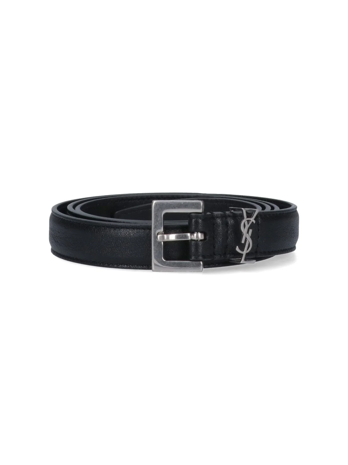 SAINT LAURENT MONOGRAM BELT, BLACK SMOOTH LEATHER, SQUARE BUCKLE, MONOGRAMMED LOOP, ADJUSTABLE. PRODUCT INFO PRODUCT CODE 612616 BRM0E1000 - 100% LEATHER - HEIGHT: 2 CM - MADE IN ITALY - 612616 BRM0E-1000 MADE IN: ITALY