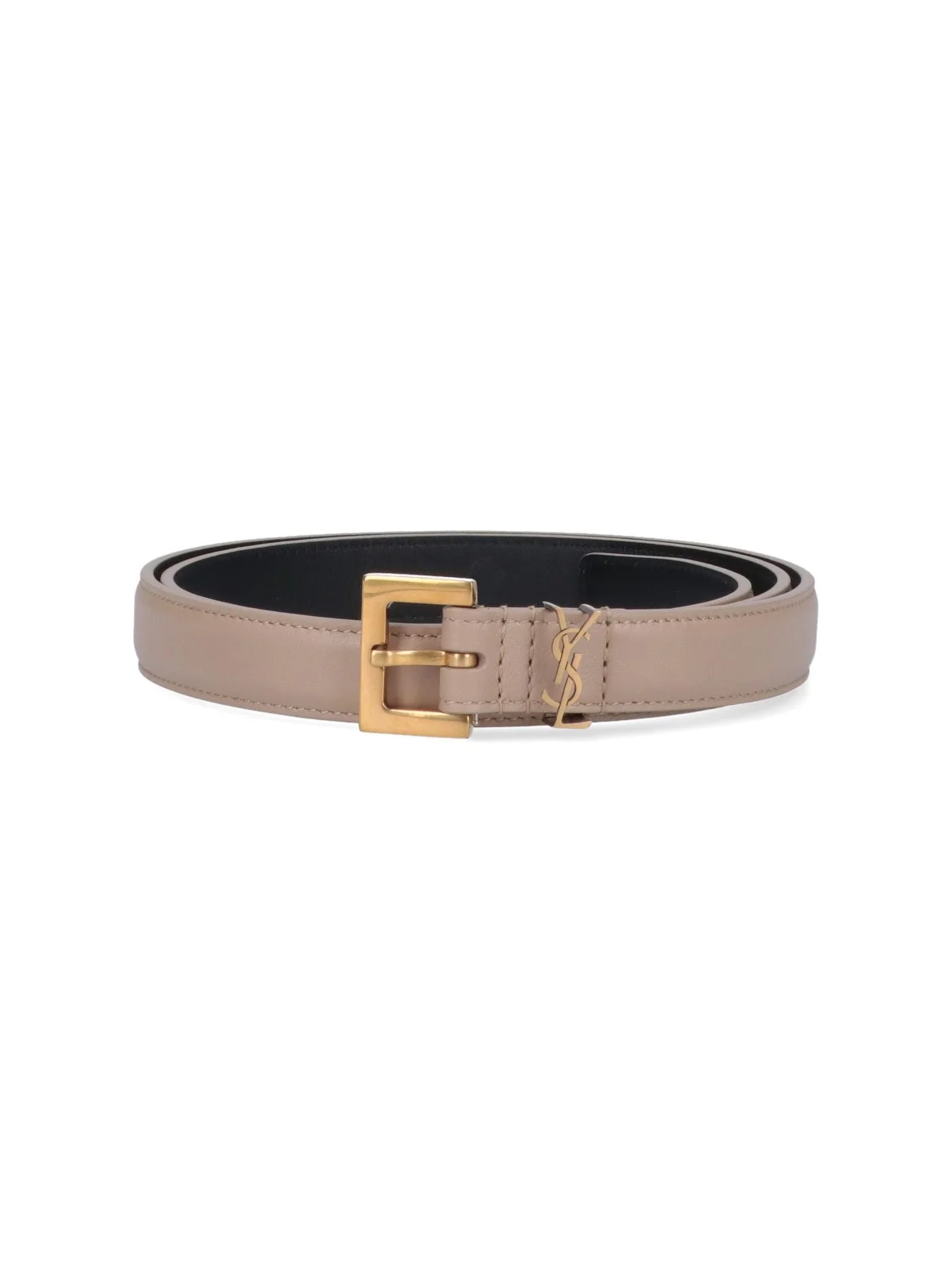 SAINT LAURENT MONOGRAM LOGO BELT, LEATHER, BEIGE, SQUARE GOLDEN METAL BUCKLE, METAL LOOP WITH MONOGRAM LOGO. PRODUCT INFO PRODUCT CODE 554465 BOO0W2721 - 100% LEATHER - HEIGHT: 2 CM - MADE IN ITALY - 554465 BOO0W-2721 MADE IN: ITALY