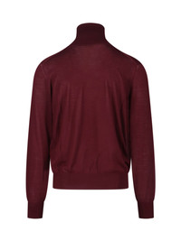SAINT LAURENT WOOL HIGH NECK SWEATER IN RED BURGUNDY SHADES, RIBBED TRIM, STRAIGHT HEM. PRODUCT INFO PRODUCT CODE 821739 Y76GM6040 COMPOSITION: 100% WOOL SIZE AND FIT: SLIM FIT MADE IN: ITALY
