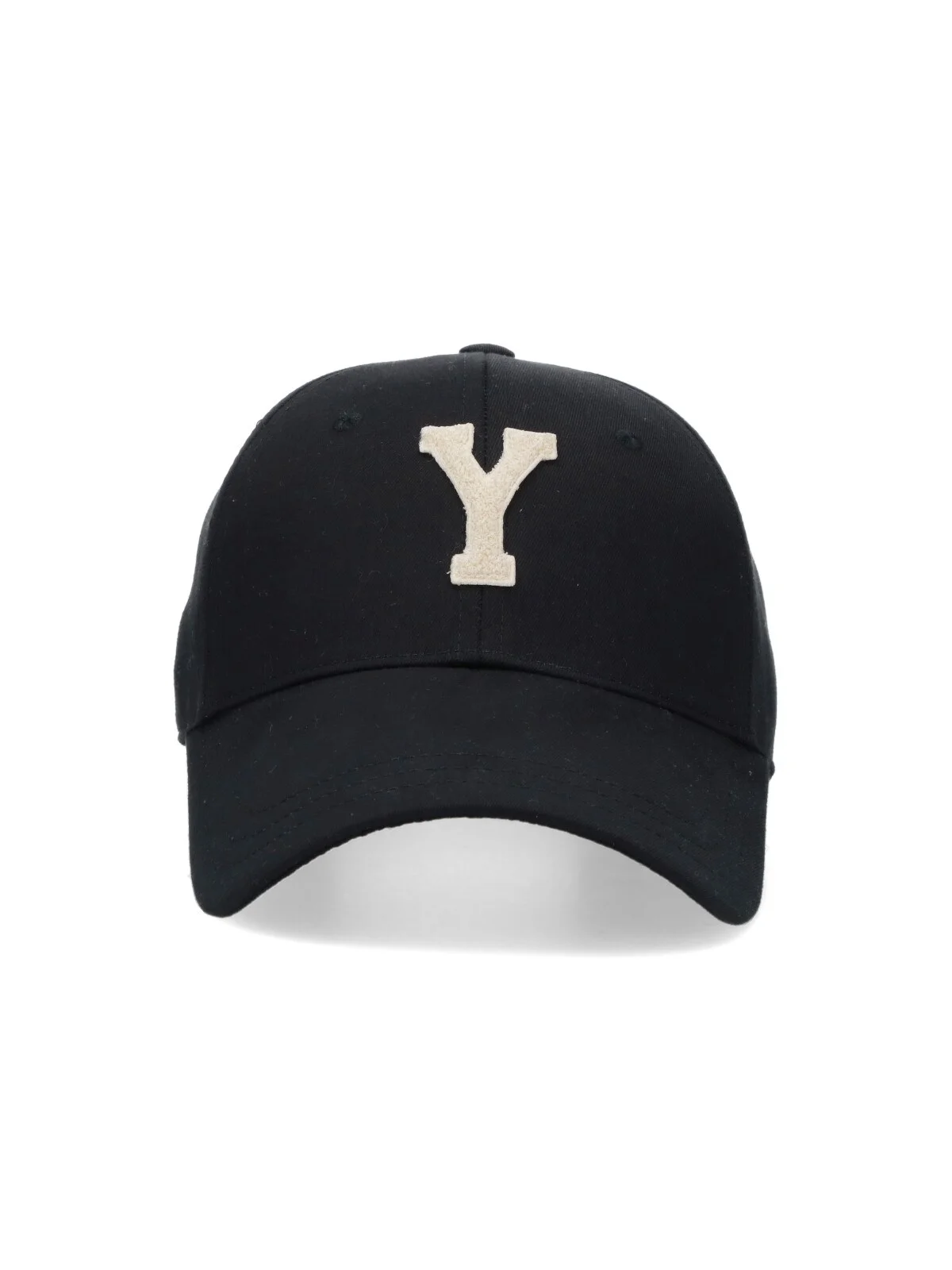 SAINT LAURENT Y BASEBALL CAP IN BLACK COTTON WITH CURVED VISOR ON THE FRONT, CONTRASTING "Y" PATCH ON THE FRONT, AND ADJUSTABLE STRAP ON THE BACK. PRODUCT INFO PRODUCT CODE 816871 3YR571078 COMPOSITION: 100% COTTON MADE IN: ITALY