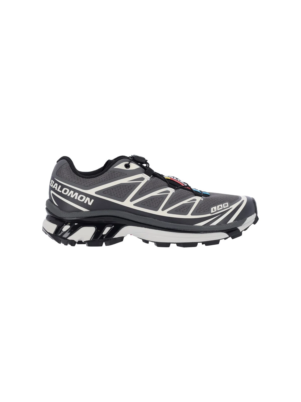 SALOMON "XT-6" SNEAKERS IN BLACK FABRIC WITH GRAY MESH DETAILS, ROUND TOE, "QUICKLACE™" DRAWSTRING CLOSURE, MULTICOLOR LOGO LABEL DETAIL, SIDE LOGO PRINT, BACK LOGO PRINT, CONTRASTING TEXTURED RUBBER SOLE. PRODUCT INFO PRODUCT CODE L47989500BK ASPHALT CASTE COMPOSITION: 100% TEXTILE MADE IN: VIETNAM - SOLE: 100% RUBBER