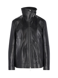 SPORTMAX OVERSIZED BLACK LEATHER JACKET WITH HIGH NECK, DOUBLE ZIP CLOSURE, LONG SLEEVES, TWO VERTICAL SIDE POCKETS, PADDED LINING, STRAIGHT HEM. PRODUCT INFO PRODUCT CODE 2612441021600002 COMPOSITION: 100% LEATHER SIZE AND FIT: SOFT WEARABILITY MADE IN: ITALY - TRIMS: 100% METAL