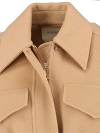 SPORTMAX 'CANTORE' BEIGE VIRGIN WOOL JACKET WITH CLASSIC COLLAR, CONCEALED ZIP CLOSURE, TWO CHEST FLAP POCKETS, ADJUSTABLE BELT AT THE WAIST, GOLD METAL BUCKLE DETAIL, TWO SIDE POCKETS, BUTTON CUFFS, STRAIGHT HEM. PRODUCT INFO PRODUCT CODE 2522086031600001 COMPOSITION: 100% VIRGIN WOOL SIZE AND FIT: REGULAR FIT MADE IN: CAMBODIA