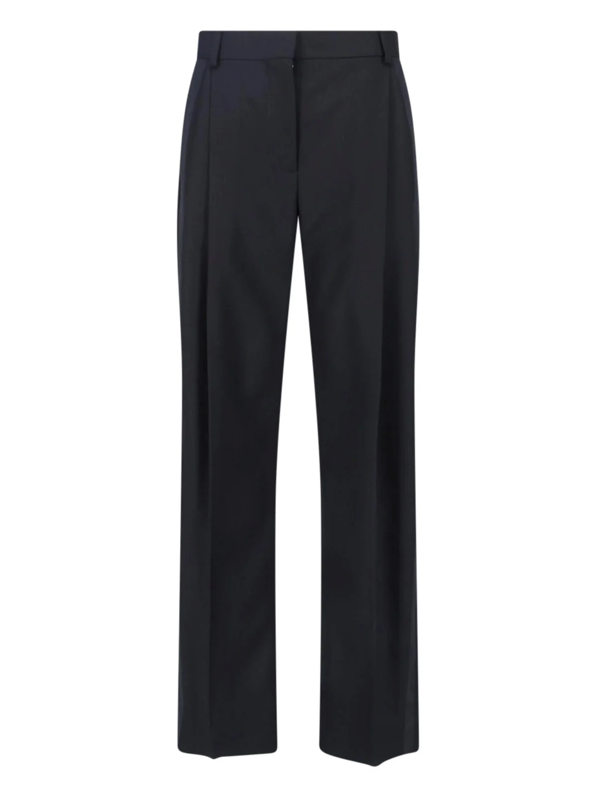- TAILORED PANTS BY STELLA MCCARTNEY IN BLACK WOOL - MID-RISE - ZIP CLOSURE AND HOOKS - BELT LOOPS - FRONT PLEATS - TWO SIDE POCKETS - TWO BACK POCKETS PRODUCT INFO PRODUCT CODE 644025 SSA361000 COMPOSITION: 100% WOOL SIZE AND FIT: REGULAR FIT MADE IN: ROMANIA