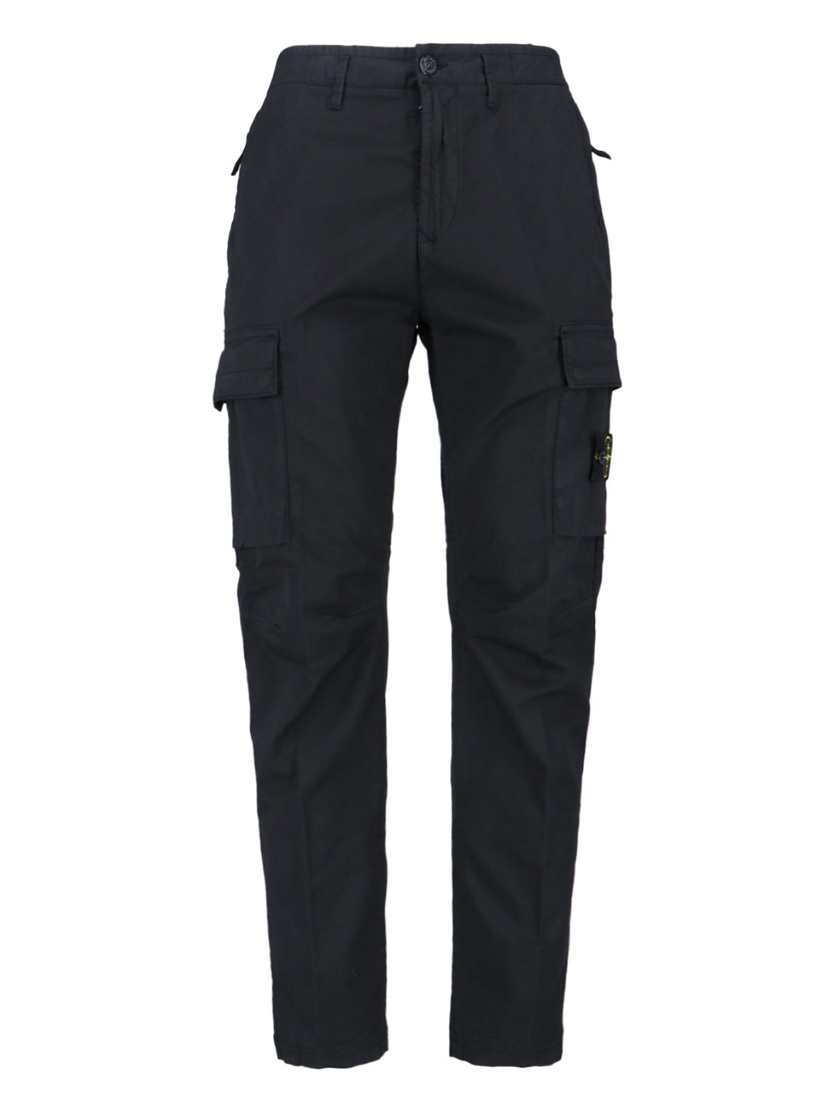 STONE ISLAND '3100304 SUPIMA®' BLACK COTTON TWILL CARGO PANTS WITH MID WAIST, BUTTON AND ZIP CLOSURE, TWO TOP POCKETS, TWO SIDE CARGO POCKETS, SIDE 'COMPASS' LOGO DETAIL, HIDDEN BUTTON POCKET AT THE BACK, STRAIGHT LEG. PRODUCT INFO PRODUCT CODE K2S153100032S0010V0029 COMPOSITION: 97% COTTON, 3% ELASTANE SIZE AND FIT: REGULAR FIT MADE IN: TUNISIA