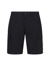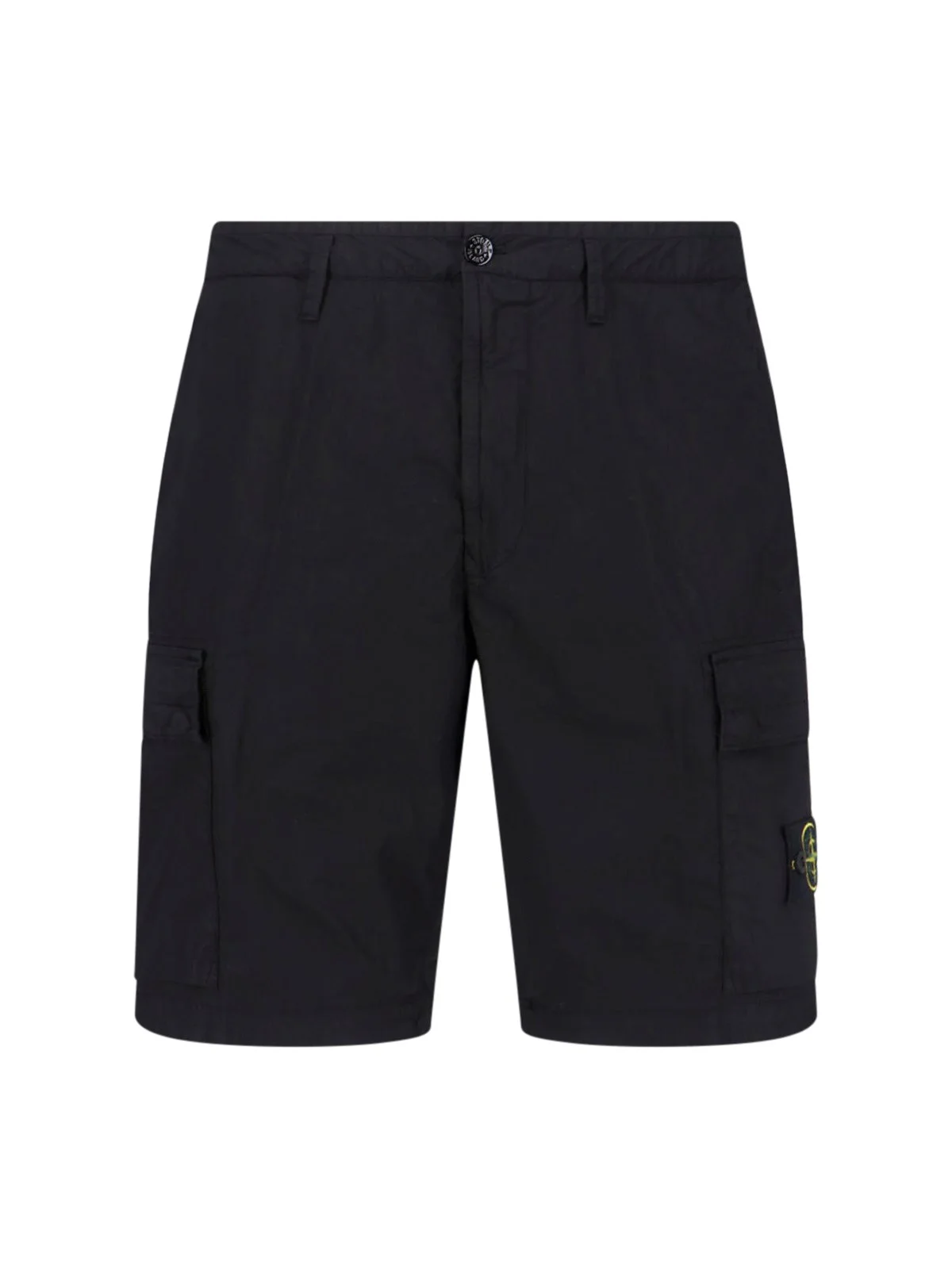 STONE ISLAND BLACK COTTON CARGO SHORTS WITH MID WAIST, BUTTON AND ZIP CLOSURE, BELT LOOPS, TWO SIDE CARGO POCKETS, SIDE "COMPASS" LOGO PATCH, TWO SIDE POCKETS, BACK WELT POCKET, STRAIGHT LEG. PRODUCT INFO PRODUCT CODE L1S15L100020S0003V0029 COMPOSITION: 97% COTTON, 3% ELASTANE SIZE AND FIT: REGULAR FIT MADE IN: ROMANIA