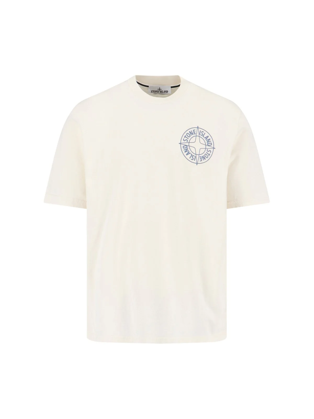STONE ISLAND 'COMPASS' WHITE COTTON CREW NECK T-SHIRT WITH SHORT SLEEVES, CONTRAST 'CONPASS' LOGO ON THE FRONT, STRAIGHT HEM. PRODUCT INFO PRODUCT CODE L1S152100001S0284V0093 COMPOSITION: 100% COTTON SIZE AND FIT: REGULAR FIT MADE IN: TUNISIA