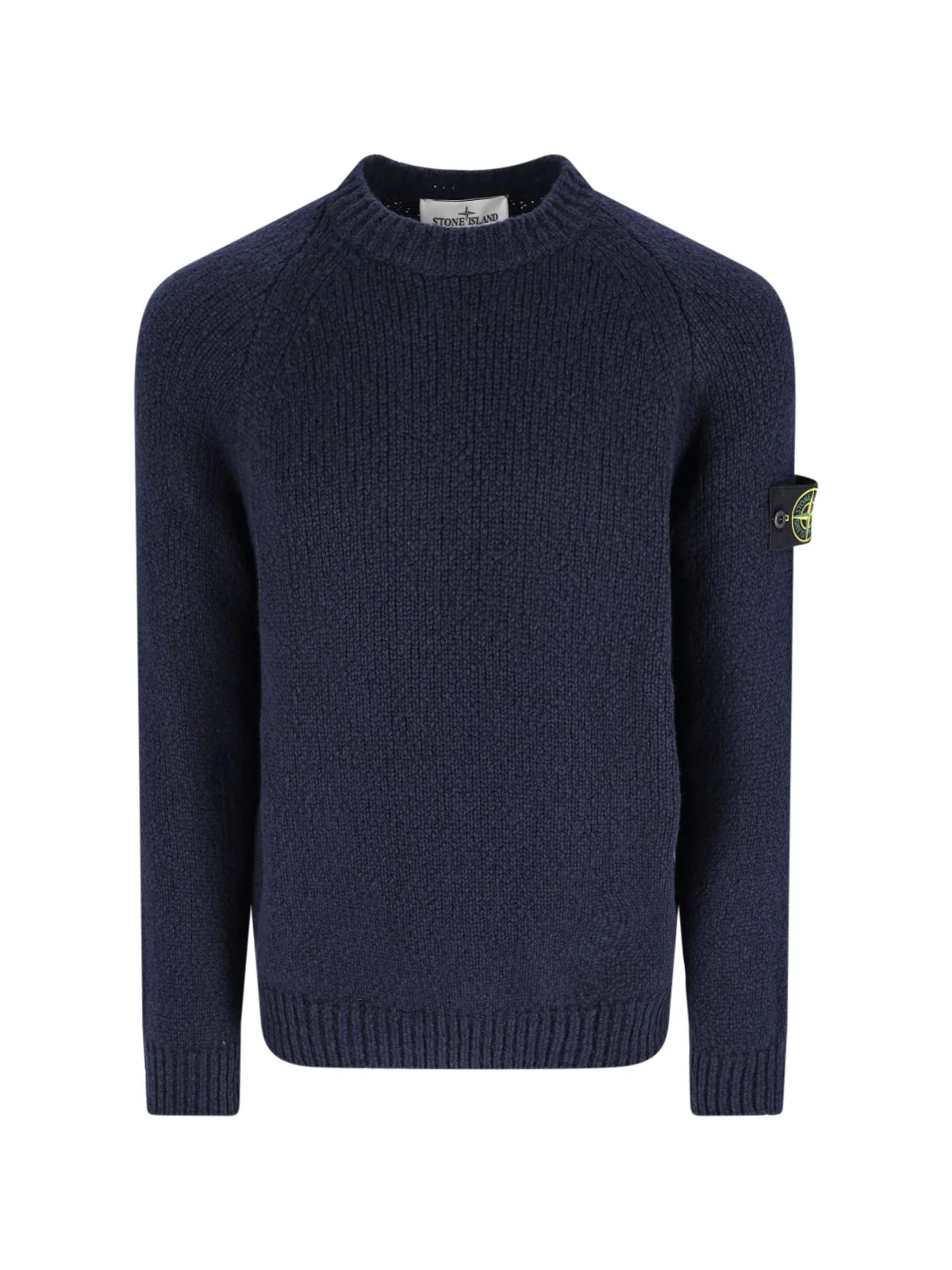 STONE ISLAND CREW NECK SWEATER IN NAVY VIRGIN WOOL BLEND WITH LONG SLEEVES, COMPASS LOGO PATCH ON THE SLEEVE, RIBBED TRIM, STRAIGHT HEM. PRODUCT INFO PRODUCT CODE K2S155100050S00N1V0020 COMPOSITION: 48% VIRGIN WOOL, 43% POLYAMIDE, 9% VISCOSE SIZE AND FIT: REGULAR FIT MADE IN: CROATIA