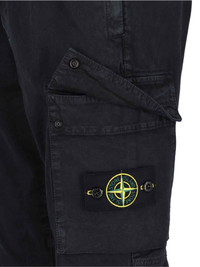 STONE ISLAND LOGO CARGO PANTS IN BLACK COTTON WITH MID ELASTIC WAISTBAND, ZIP CLOSURE, TWO SIDE ZIP POCKETS, TWO SIDE PUFF POCKETS, SIDE "COMPASS" LOGO LABEL, BACK WELT POCKET, STRAIGHT LEG. PRODUCT INFO PRODUCT CODE K2S153100033S00L1V0129 COMPOSITION: 97% COTTON, 3% ELASTANE SIZE AND FIT: REGULAR FIT MADE IN: ROMANIA
