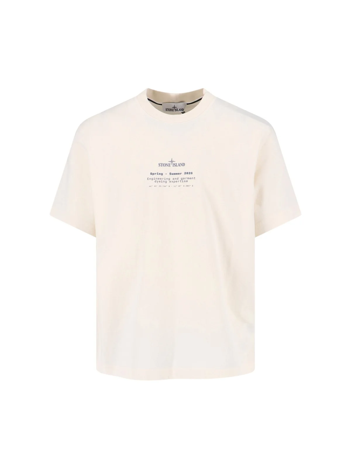 STONE ISLAND LOGO WHITE COTTON CREW NECK T-SHIRT WITH SHORT SLEEVES, CONTRASTING LOGO PRINTED ON THE FRONT, STRAIGHT HEM. PRODUCT INFO PRODUCT CODE L1S152100001S0285V0093 COMPOSITION: 100% COTTON SIZE AND FIT: REGULAR FIT MADE IN: TUNISIA