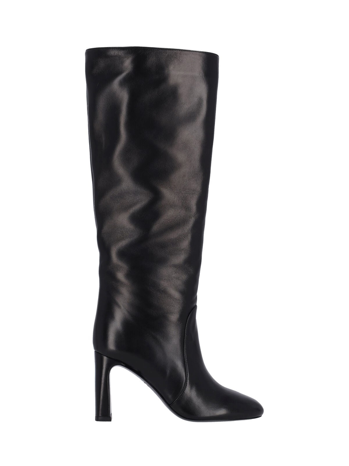 STUART WEITZMAN 'BABETTE 85' BLACK LAMBSKIN BOOTS WITH ROUND TOE, SQUARE HEEL, SLIP-ON FIT, LEATHER SOLE. PRODUCT INFO PRODUCT CODE SL545BLK COMPOSITION: 100% LAMBSKIN SIZE AND FIT: HEEL HEIGHT 8.5 CM MADE IN: SPAIN - SOLE: 100% LEATHER