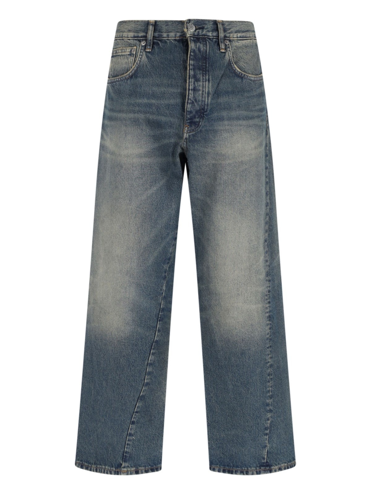 SUNFLOWER TWIST WIDE JEANS IN BLUE DENIM WITH USED-EFFECT WASH, MID WAIST, BELT LOOPS, BUTTON CLOSURE, FIVE-POCKET DESIGN, BACK LOGO PATCH, AND WIDE LEG. PRODUCT INFO PRODUCT CODE 5132DIRTY BLUE COMPOSITION: 100% COTTON SIZE AND FIT: SOFT FIT MADE IN: TUNISIA - "DENIM" SIZE SCALE