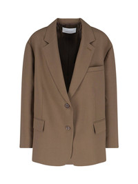 THE FRANKIE SHOP 'BEA' SINGLE-BREASTED BLAZER IN LIGHT BROWN FABRIC WITH CLASSIC LAPELS, TWO-BUTTON CLOSURE, CHEST POCKET, TWO SIDE FLAP POCKETS, BUTTON CUFFS, TWO BACK SLITS, STRAIGHT HEM. PRODUCT INFO PRODUCT CODE BEA BLAZERCHOCOLATE COMPOSITION: 96% POLYESTER, 4% ELASTANE SIZE AND FIT: OVERSIZED FIT MADE IN: KOREA
