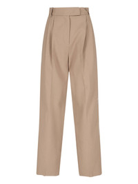 THE FRANKIE SHOP 'BEA' STRAIGHT PANTS IN BEIGE FABRIC WITH MID WAIST, BELT LOOPS, HOOK AND ZIP CLOSURE, FRONT PIN TUCKS, TWO SIDE POCKETS, TWO BACK BUTTON WELT POCKETS, STRAIGHT LEG. PRODUCT INFO PRODUCT CODE BEA SUIT PANTSLATTE COMPOSITION: 96% POLYESTER, 4% ELASTANE SIZE AND FIT: REGULAR FIT MADE IN: KOREA