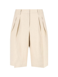 THE FRANKIE SHOP "BILBAO" BERMUDA PANTS IN BEIGE LINEN BLEND WITH MID WAIST, BELT LOOPS, HOOK AND ZIP CLOSURE, FRONT PIN TUCKS, TWO SIDE POCKETS, BACK WELT POCKET, STRAIGHT LEG. PRODUCT INFO PRODUCT CODE BILBAO PLEATED LINEN BERMUDACEMENT COMPOSITION: 67% LYOCELL, 39% LINEN SIZE AND FIT: REGULAR FIT MADE IN: CHINA