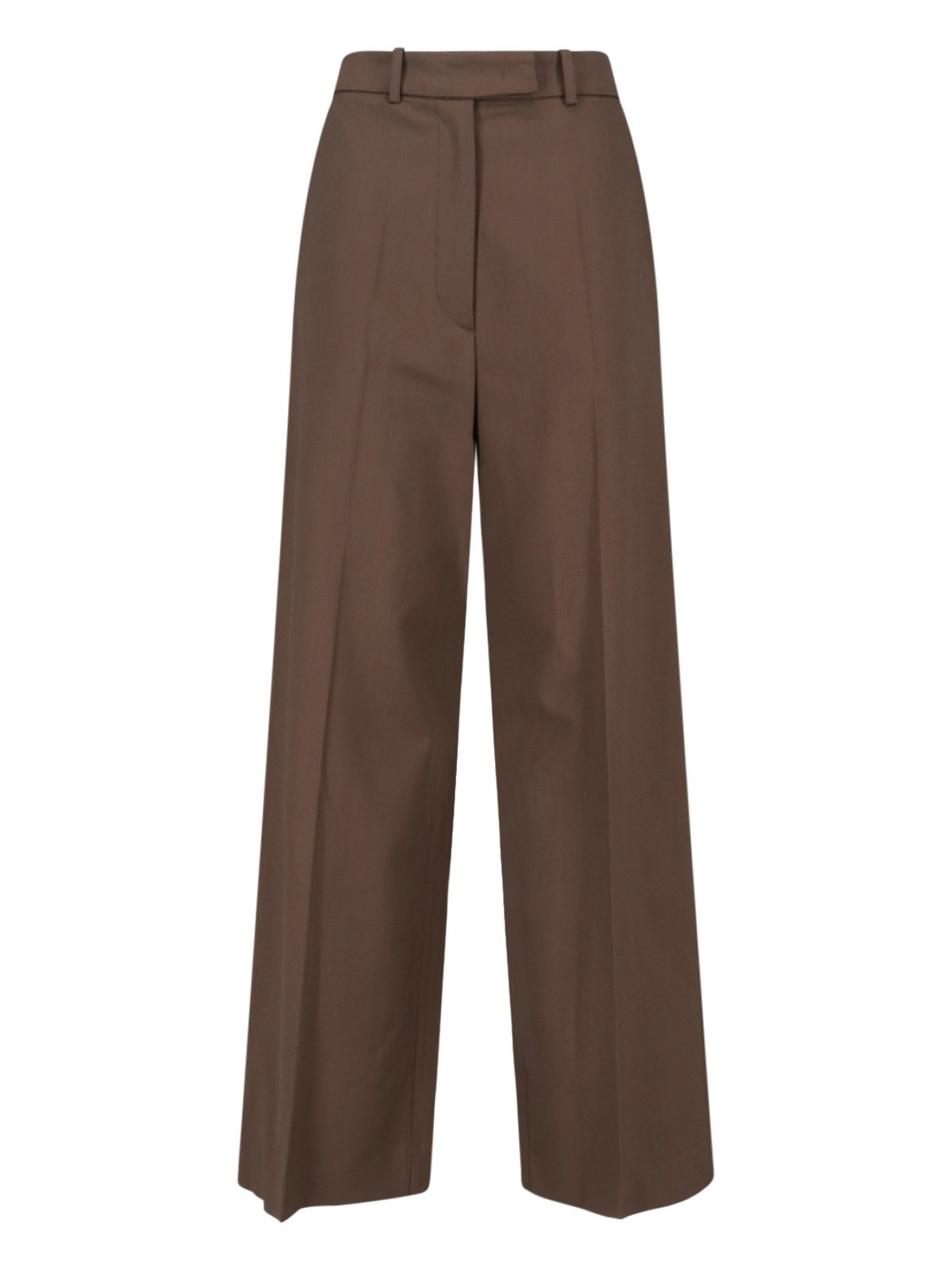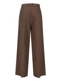 THE FRANKIE SHOP 'BRICKELL' TROUSERS IN BROWN VIRGIN WOOL BLEND WITH MID WAIST, BELT LOOPS, HOOK AND ZIP CLOSURE, TWO SIDE POCKETS, BACK WELT POCKET, WIDE LEG. PRODUCT INFO PRODUCT CODE BRICKELL TROUSERSMOCHA COMPOSITION: 54% POLYESTER, 44% VIRGIN WOOL, 2% ELASTANE SIZE AND FIT: SOFT FIT MADE IN: SERBIA