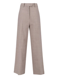 THE FRANKIE SHOP 'BRICKELL' TROUSERS IN TAUPE VIRGIN WOOL BLEND, HIGH WAIST, BELT LOOPS, HOOK, BUTTON AND ZIP CLOSURE, TWO SIDE POCKETS, ONE BACK POCKET, STRAIGHT LEG. PRODUCT INFO PRODUCT CODE BRICKELL TROUSERSTAUPE MELANGE COMPOSITION: 53% POLYESTER, 43% VIRGIN WOOL, 4% ELASTANE SIZE AND FIT: REGULAR FIT MADE IN: FRANCE
