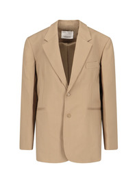 THE FRANKIE SHOP 'CROSBY' BLAZER IN BEIGE VIRGIN WOOL BLEND WITH CLASSIC LAPELS, CHEST POCKET, BUTTON CLOSURE, TWO SIDE POCKETS, SIDE BUTTON CLOSURE, BUTTON CUFFS, STRAIGHT HEM. PRODUCT INFO PRODUCT CODE CROSBY WRAP BLAZERCAMEL COMPOSITION: 54% POLYESTER, 44% VIRGIN WOOL SIZE AND FIT: SOFT FIT MADE IN: FRANCE