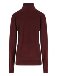 THE FRANKIE SHOP 'DEVAR' SWEATER IN RED MERINO WOOL, BURGUNDY SHADES, HIGH NECK, LONG SLEEVES, RIBBED TRIMS, STRAIGHT HEM. PRODUCT INFO PRODUCT CODE EVE THIN TURTLENECK SWEATERBURGUNDY COMPOSITION: 100% MERINO WOOL SIZE AND FIT: REGULAR FIT MADE IN: CHINA