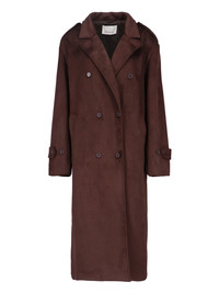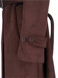 THE FRANKIE SHOP 'PEMBROKE' TRENCH COAT IN BROWN FAUX SUEDE WITH CLASSIC LAPELS, DROPPED SHOULDERS, BUTTON CLOSURE, ADJUSTABLE BELT AT THE WAIST, TWO SIDE POCKETS, BUTTON CUFFS, STRAIGHT HEM. PRODUCT INFO PRODUCT CODE PEMBROKE FAUX SUEDE TRENCHBROWN COMPOSITION: 98% POLYESTER, 2% ELASTANE SIZE AND FIT: SOFT FIT MADE IN: CHINA