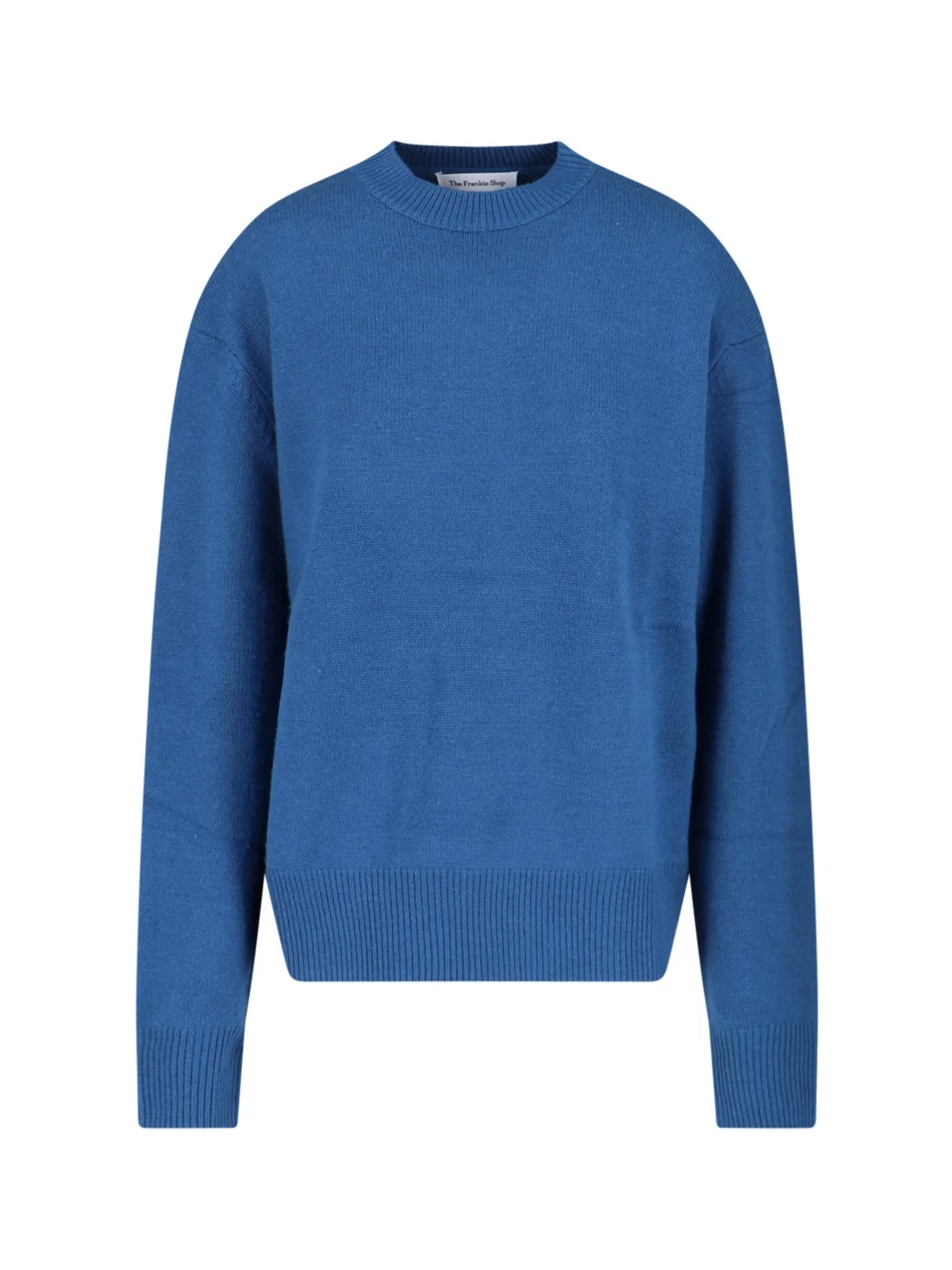 THE FRANKIE SHOP 'RAFAELA' SWEATER IN BLUE MERINO WOOL AND CASHMERE BLEND WITH CREW NECK, DROPPED SHOULDERS, LONG SLEEVES, RIBBED TRIMS, STRAIGHT HEM. PRODUCT INFO PRODUCT CODE RAFAELA PADDED KNIT SWEATERCOBALT COMPOSITION: 90% MERINO WOOL, 10% CASHMERE SIZE AND FIT: OVERSIZED FIT MADE IN: CHINA