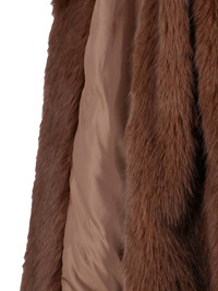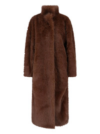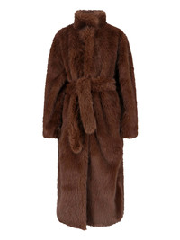 THE FRANKIE SHOP 'RAVELLO' FAUX FUR COAT IN BROWN FABRIC WITH HIGH NECK, LONG HANDFULS, FRONT BELT CLOSURE, STRAIGHT HEM. PRODUCT INFO PRODUCT CODE RAVELLO FAUX FUR ROBE COATBROWN COMPOSITION: 100% POLYESTER SIZE AND FIT: REGULAR FIT MADE IN: CHINA
