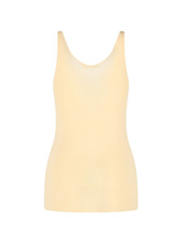 THE FRANKIE SHOP 'RIVO' KNIT TANK TOP IN CREAM FABRIC WITH ROUND NECKLINE, THIN STRAPS, DEEP BACK NECKLINE, STRAIGHT HEM. PRODUCT INFO PRODUCT CODE RIVO KNIT TANK TOPPALE YELLOW COMPOSITION: 100% RAYON SIZE AND FIT: REGULAR FIT MADE IN: CHINA