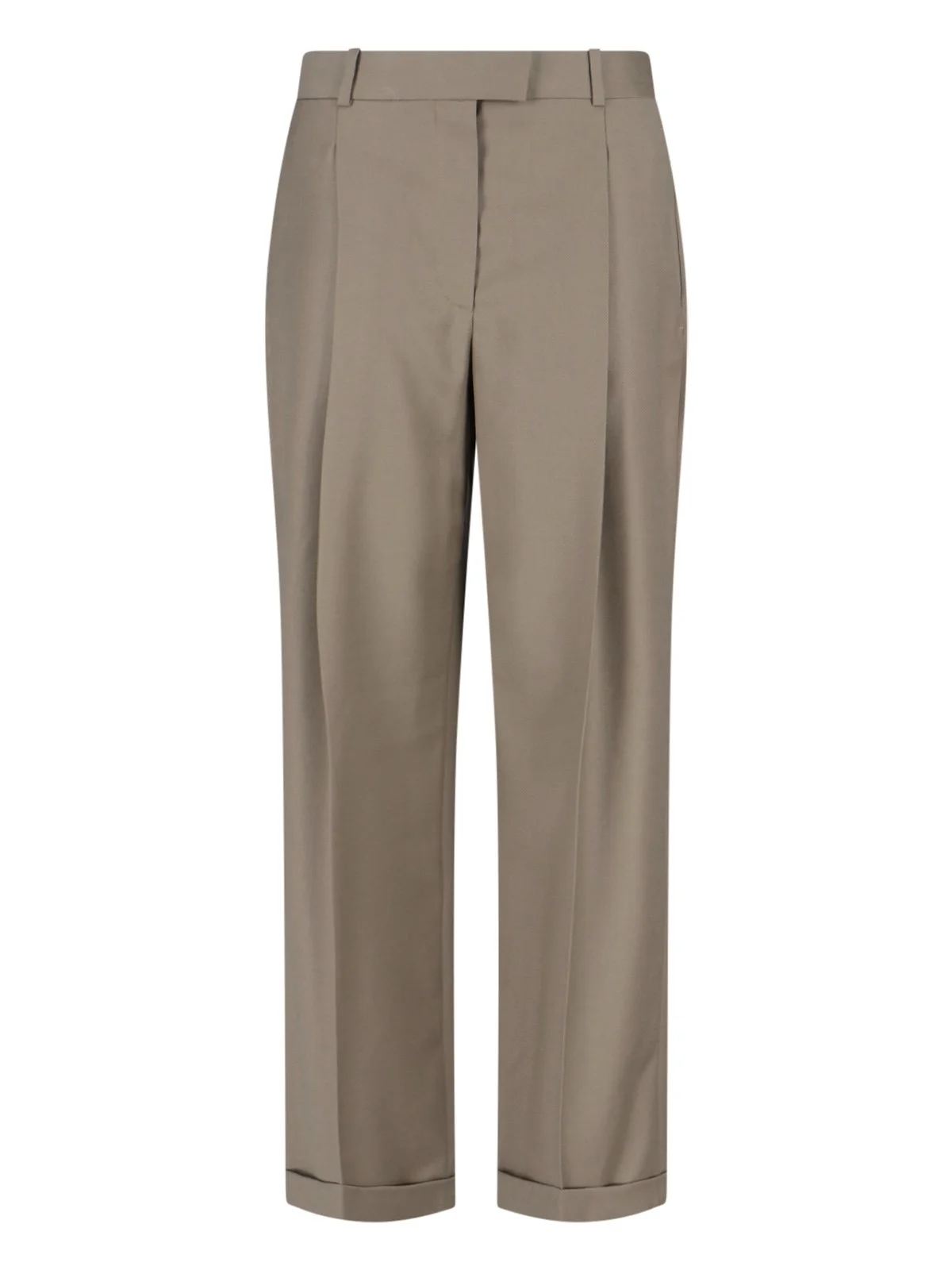 THE ROW 'ALFIDIS' TROUSERS IN GREEN VIRGIN WOOL WITH LOW WAIST, ZIP CLOSURE, DOUBLE FRONT PLEATS, TWO SIDE WELT POCKETS, TWO BACK BUTTON POCKETS, SILK INTERIOR, STRAIGHT LEG. PRODUCT INFO PRODUCT CODE 10239 W4084MYB COMPOSITION: 100% VIRGIN WOOL SIZE AND FIT: REGULAR FIT MADE IN: ITALY