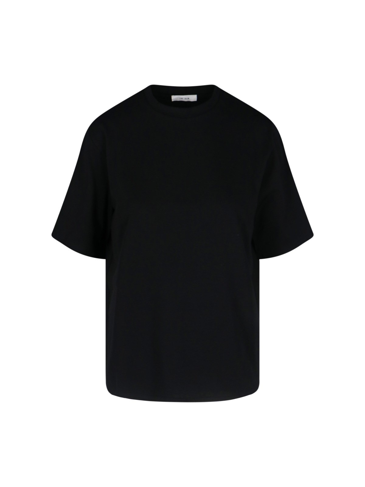 THE ROW 'CHIARA' BLACK COTTON CREW NECK T-SHIRT WITH SHORT SLEEVES, ICONIC BACK STITCHING, STRAIGHT HEM. PRODUCT INFO PRODUCT CODE 5739 K220BLK COMPOSITION: 100% COTTON SIZE AND FIT: BOXY FIT MADE IN: U.S.A.