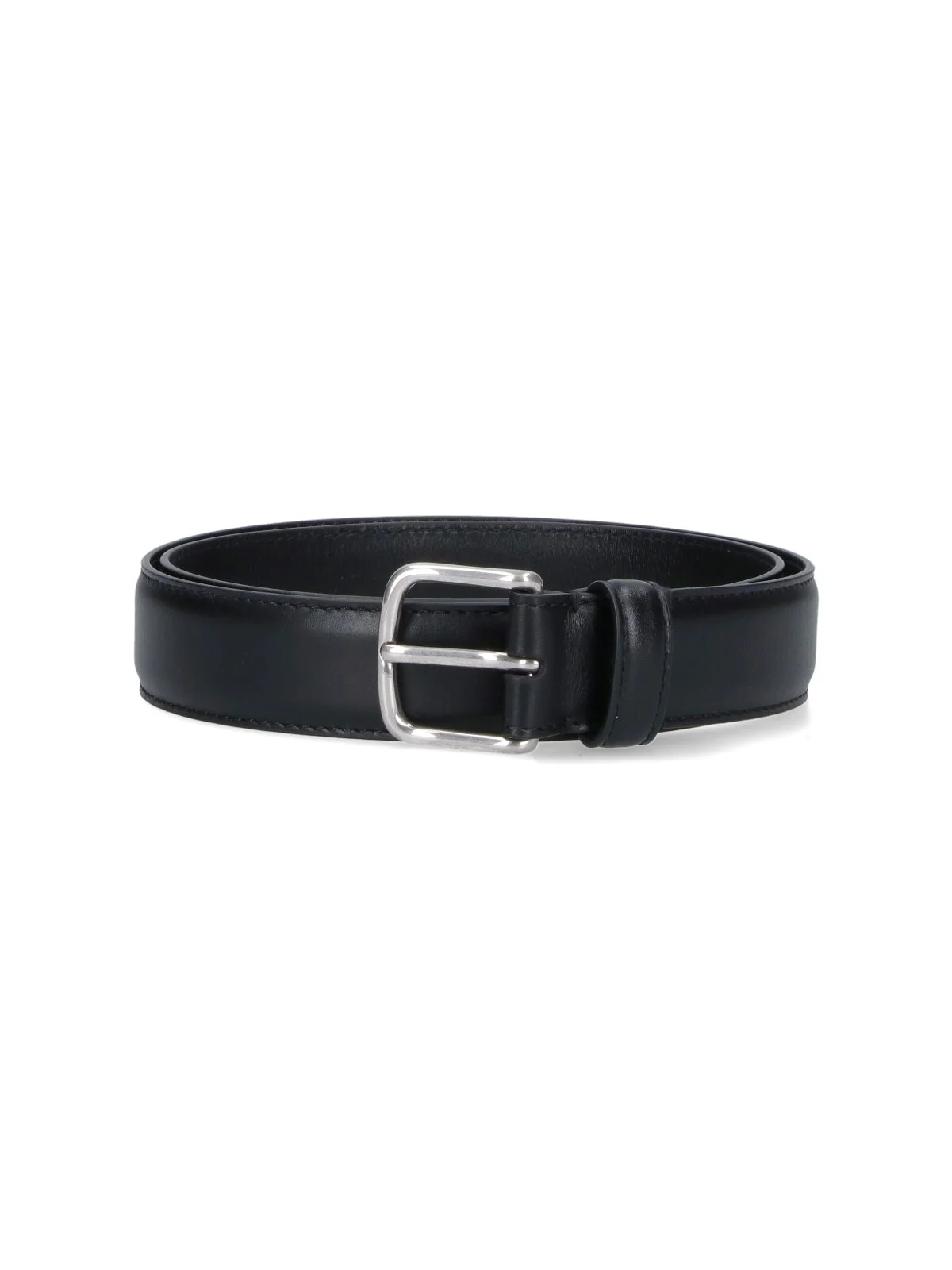 THE ROW 'CLASSIC' BLACK CALF LEATHER BELT WITH SILVER METAL BUCKLE CLOSURE AT THE FRONT, ADJUSTABLE. PRODUCT INFO PRODUCT CODE W1283 L60BAS COMPOSITION: 100% CALF LEATHER SIZE AND FIT: HEIGHT: 3 CM MADE IN: ITALY - TRIMS: 100% METAL