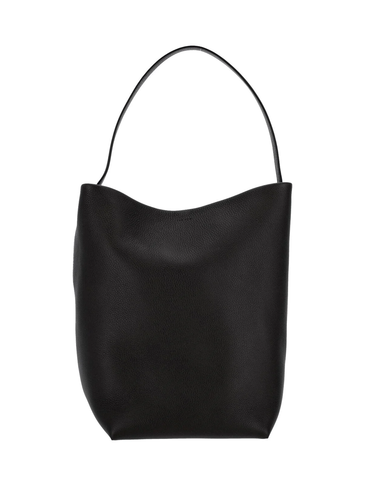 THE ROW 'PARK N/S' LARGE TOTE BAG IN BLACK HAMMERED LEATHER WITH TOP HANDLE, LACE CLOSURE, TONAL EMBOSSED LOGO ON THE FRONT, SINGLE INNER COMPARTMENT. PRODUCT INFO PRODUCT CODE W1273M L129BLK COMPOSITION: 100% LEATHER SIZE AND FIT: H 42 X W 38 X D 21.5 CM MADE IN: ITALY