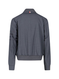 THOM BROWNE '4-BAR' GREY WOOL BOMBER JACKET WITH RIBBED COLLAR, ZIP CLOSURE, TWO SIDE POCKETS, ICONIC TONAL STRIPE PRINT ON THE SLEEVE, TRICOLOR GROSGRAIN TAB AT THE BACK, RIBBED HEM AND CUFFS, STRAIGHT HEM. PRODUCT INFO PRODUCT CODE MJO030A 06146025 - NUMERIC SIZE SCALE - 100% WOOL - REGULAR FIT MADE IN: GIAPPONE