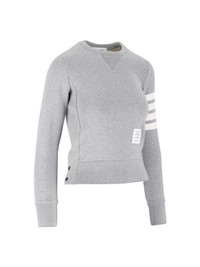 THOM BROWNE '4-BAR' CREW NECK SWEATSHIRT, IN GREY COTTON, WHITE LOGO LABEL ON FRONT, WHITE ICONIC SLEEVE BANDS DETAIL, ADJUSTABLE SIDE SLITS BUTTONS, RIBBED TRIM, STRAIGHT HEM. PRODUCT INFO PRODUCT CODE FJT002A 00535055 - 100% COTTON - REGULAR FIT MADE IN: ITALY
