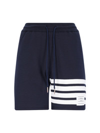 THOM BROWNE '4-BAR' SHORTS, COTTON, BLUE, ELASTICATED WAISTBAND WITH DRAWSTRING, ICONIC WHITE FRONT BACK DETAIL, FRONT LOGO LABEL, ICONIC TRICOLOUR GROSGRAIN RIBBON. SPRING SUMMER 2022, WOMEN'S CLOTHING. PRODUCT INFO PRODUCT CODE FJQ056A 00535415 - 100% COTTON - REGULAR FIT - MADE IN JAPAN - FJQ056A 00535-415