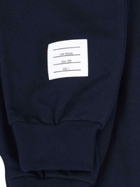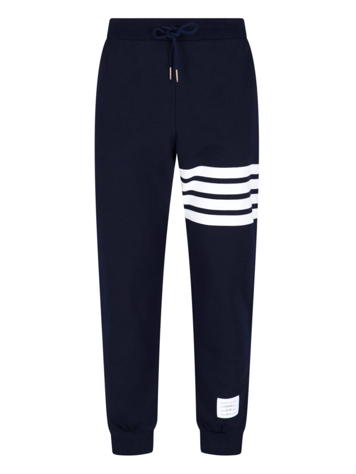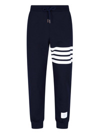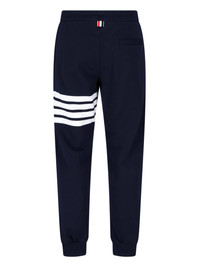 THOM BROWNE '4-BAR' SWEAT PANTS, BLUE COTTON, DRAWSTRING WAIST, TWO SIDE POCKETS, ICONIC WHITE STRIPE PRINT, LOGO LABEL FRONT, TRICOLOR GROSGRAIN TAB BACK, ELASTIC CUFFS. PRODUCT INFO PRODUCT CODE MJQ008H 00535461 - NUMERIC SIZE SCALE - 100% COTTON - REGULAR FIT MADE IN: JAPAN