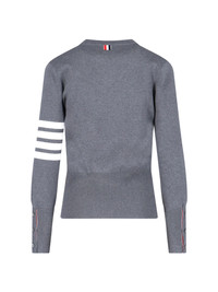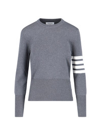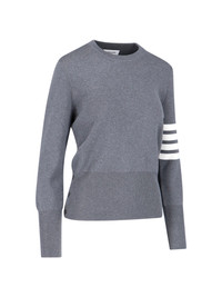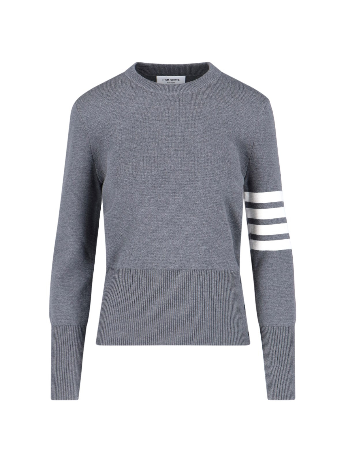 THOM BROWNE '4-BAR' GRAY COTTON, CREWNECK SWEATER WITH ICONIC WHITE STRIPED INTARSIA SLEEVES, A TRICOLOR GROSGRAIN TONGUE AT THE BACK, SIDE BUTTONS, CUFF BUTTONS, RIBBED TRIM, AND STRAIGHT HEM. PRODUCT INFO PRODUCT CODE FKA239A 00219035 COMPOSITION: 100% COTTON SIZE AND FIT: ADJUST MADE IN: ITALIA