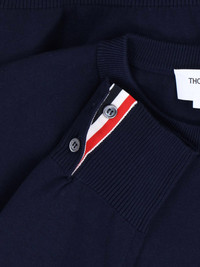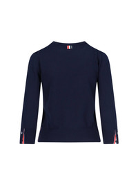 THOM BROWNE LOGO CREWNECK SWEATSHIRT IN NAVY BLUE COTTON WITH WHITE BAND DETAIL ON THE FRONT, TRICOLOR GROSGRAIN LOGO LABEL ON THE BACK, ADJUSTABLE CUFFS WITH BUTTONS, AND STRAIGHT HEM. PRODUCT INFO PRODUCT CODE FKA487A Y3036415 COMPOSITION: 100% COTTON SIZE AND FIT: FKA487A Y3036415 MADE IN: ITALY