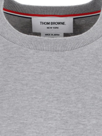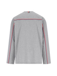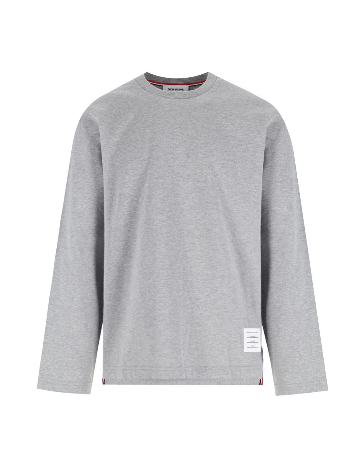 THOM BROWNE LOGO T-SHIRT IN GRAY COTTON WITH CREWNECK, LONG SLEEVES, WHITE LOGO LABEL ON THE FRONT, TRICOLOR DETAIL ON THE BACK, LOGO LABEL, AND STRAIGHT HEM. PRODUCT INFO PRODUCT CODE MJS289A 00042055 COMPOSITION: 100% COTTON SIZE AND FIT: REGULAR FIT MADE IN: JAPAN
