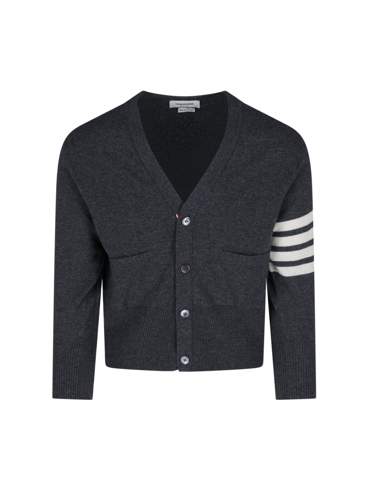 Dark Grey Cashmere 4-Bar Short V-Neck Cardigan
